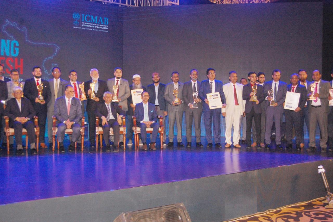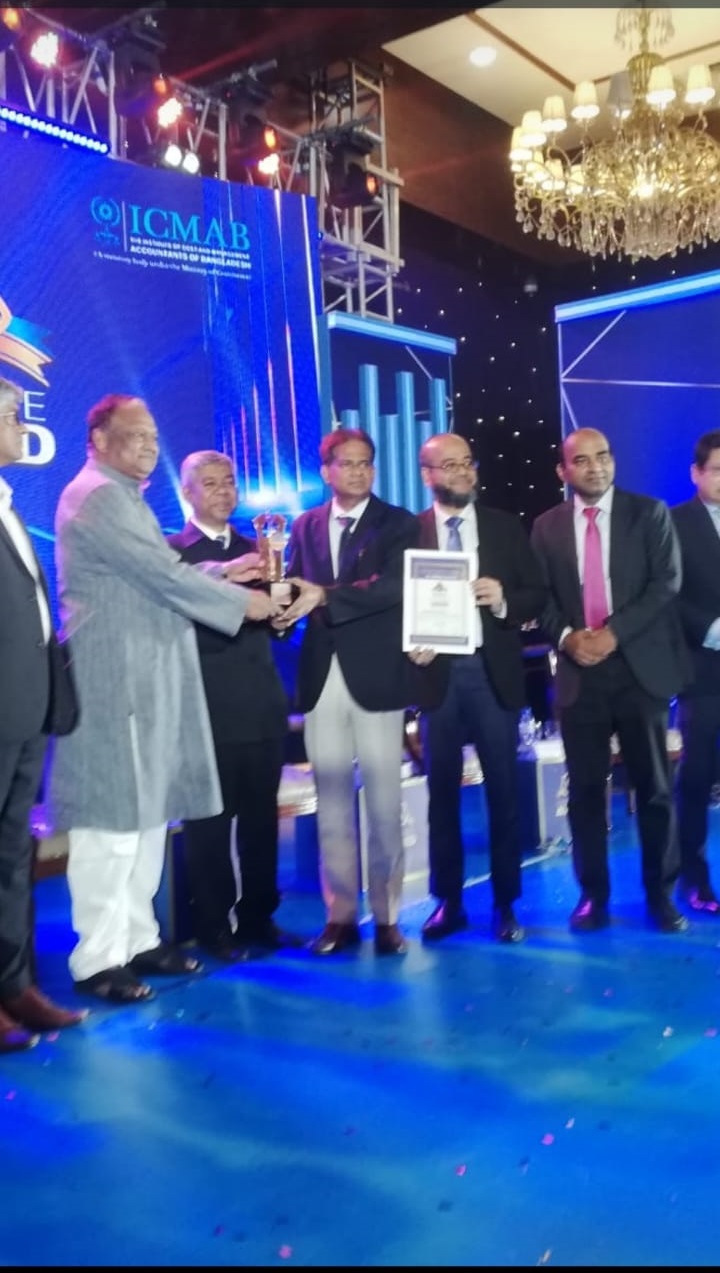 ইনস্টিটিউট অব কস্ট অ্যান্ড ম্যানেজমেন্ট একাউন্টেন্ট বাংলাদেশ (আইসিএমবি) কর্তৃক আয়োজিত প্যান প্যাসিফিক সোনারগাঁও হোটেল ঢাকায় অনুষ্ঠিত এক অনুষ্ঠানে মাননীয় বাণিজ্য মন্ত্রী জনাব টিপু মুন্সির নিকট হতে বেস্ট কর্পোরেট অ্যাওয়ার্ড ২০২৩ পুরস্কার গ্রহণ করছেন পদ্মা অয়েল কোম্পানী লিমিটেড এর ব্যবস্থাপনা পরিচালক জনাব মোঃ মাসুদুর রহমান, মহাব্যবস্থাপক (বিপণন) ও কোম্পানি সেক্রেটারি জনাব মোঃ শহীদুল আলম এবং মহাব্যবস্থাপক(হিসাব ও অর্থ) ও সিএফও জনাব কাঞ্চন চন্দ্র সোম, এফসিএমএ