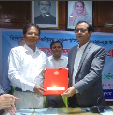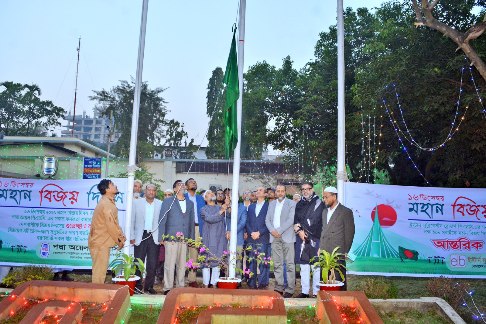 ১৬ই ডিসেম্বর ২০২৫ বিজয় দিবস উদযাপন উপলক্ষে কোম্পানির ব্যবস্থাপনা পরিচালক জনাব মোঃ মফিজুর রহমান এর উপস্থিতিতে কোম্পানির কর্মকর্তা ও কর্মচারীগণ কর্তৃক সূর্যোদয়ের প্রাক্কালে প্রধান কার্যালয়ে জাতীয় পতাকা উত্তোলন করা হচ্ছে।