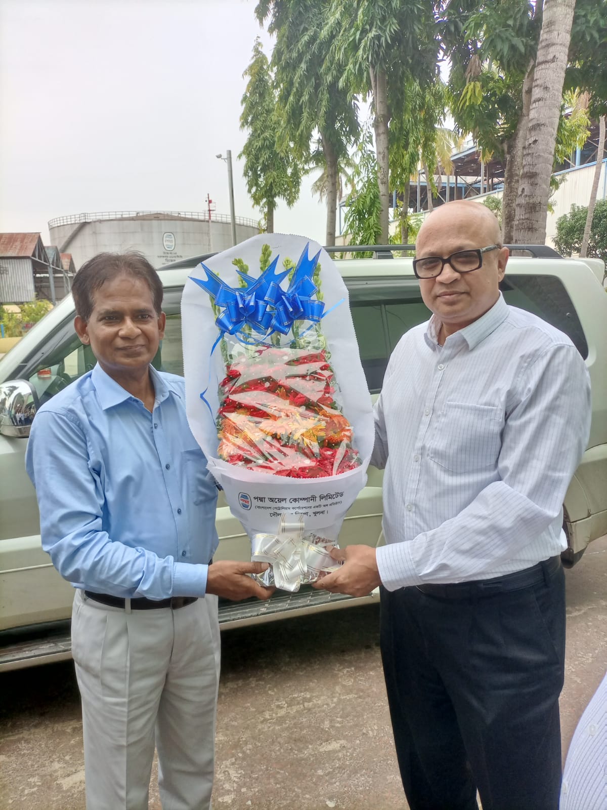 জ্বালানি ও খনিজ সম্পদ বিভাগের সচিব এবং পদ্মা অয়েল কোম্পানী লিমিটেড এর পরিচালনা পর্ষদের সম্মানিত চেয়ারম্যান মহোদয় জনাব মোঃ নুরল আলম এর কোম্পানির দৌলতপুর ডিপোতে পরিদর্শন উপলক্ষ্যে পিওসিএল এর ব্যবস্থাপনা পরিচালক কর্তৃক অভ্যর্থনা প্রদান করা হচ্ছে।